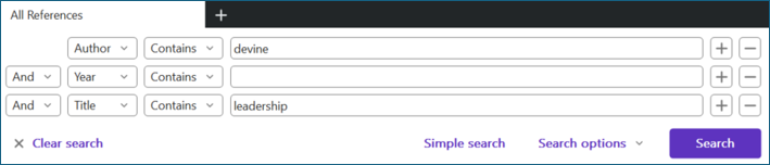 Note: You can use Search to find references you have tagged in the Notes or Keywords fields, to retrieve references that relate to a particular project or topic.